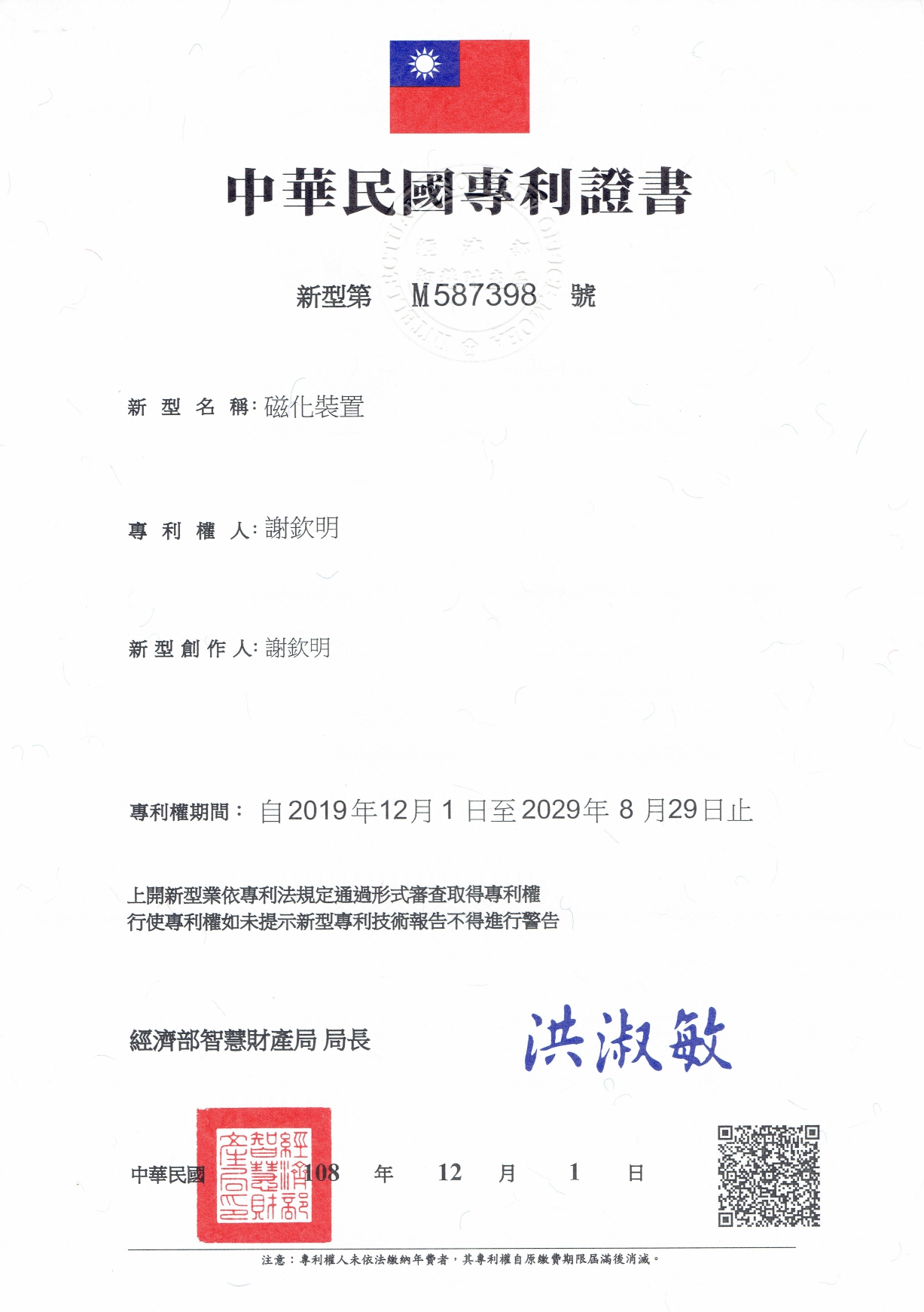 專利證書-磁化器