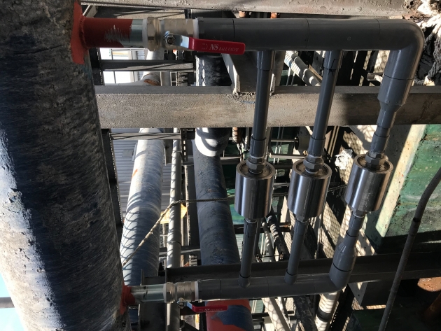 因空間磁場的設計,在所有的物質中,包含液態(水或油),都由原子核(帶正電)及核外電子(帶負電)構成,原子核則由質子(帶正電)及中子(不帶電)構成。將流體經過磁極兩端,流速與磁力產生作用,將水分子中的正負電特性進行排列,增加水的滲透率及溶解力,進而將水垢溶解於水中。