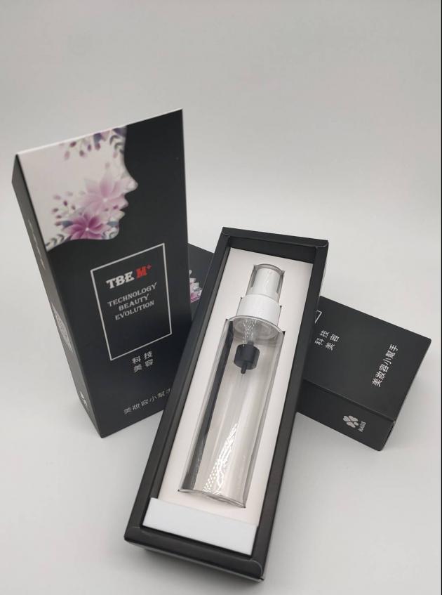 於是我們開始發想及設計,經過無數次3D列印測試,以及考量最終產品要符合經濟價值、使用限制小,以及方便攜帶,於是設計了外掛式的產品,結合高質量的細緻噴瓶,產品孕育而生,它就結合了科技美容而進化的TBE M+。