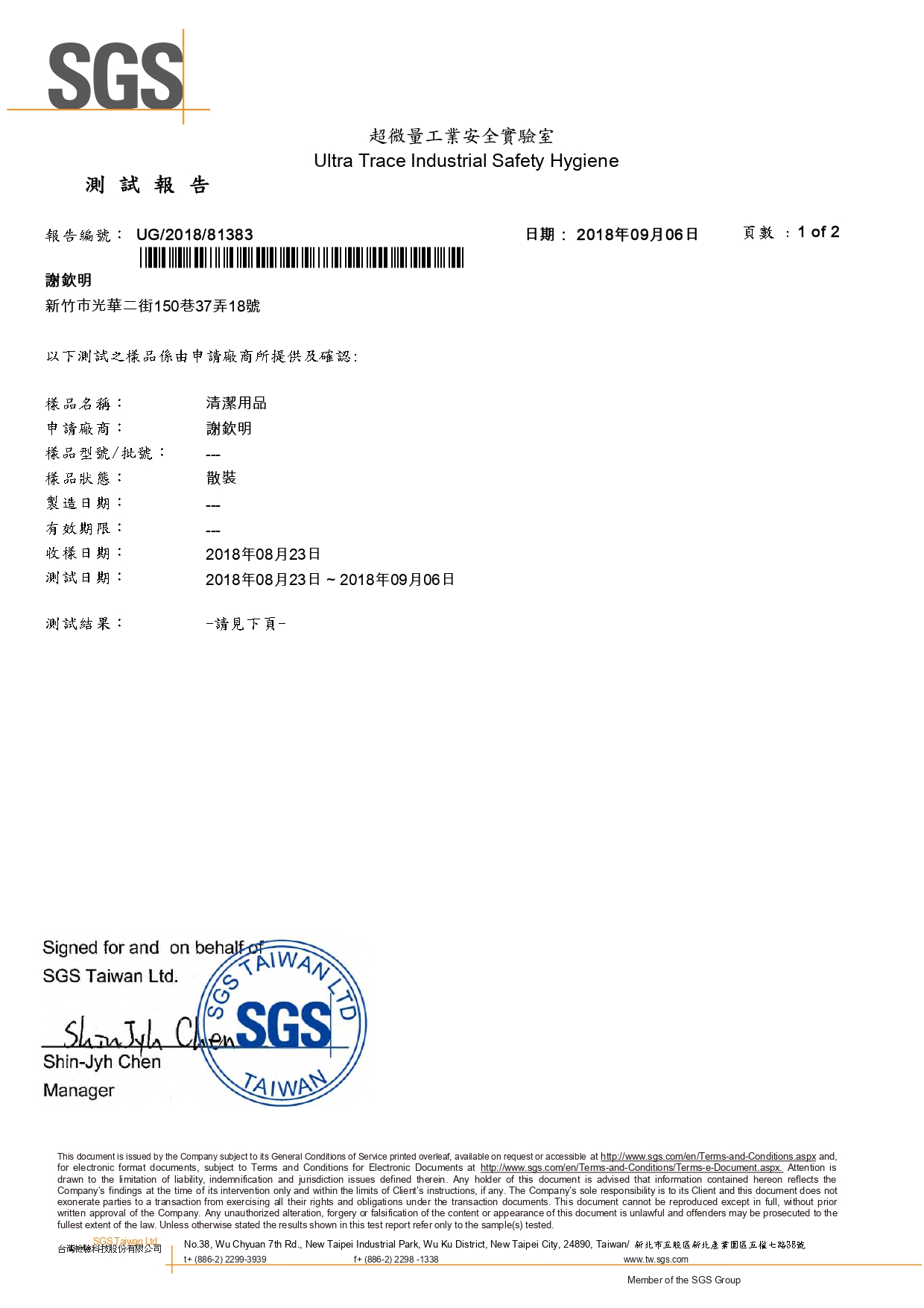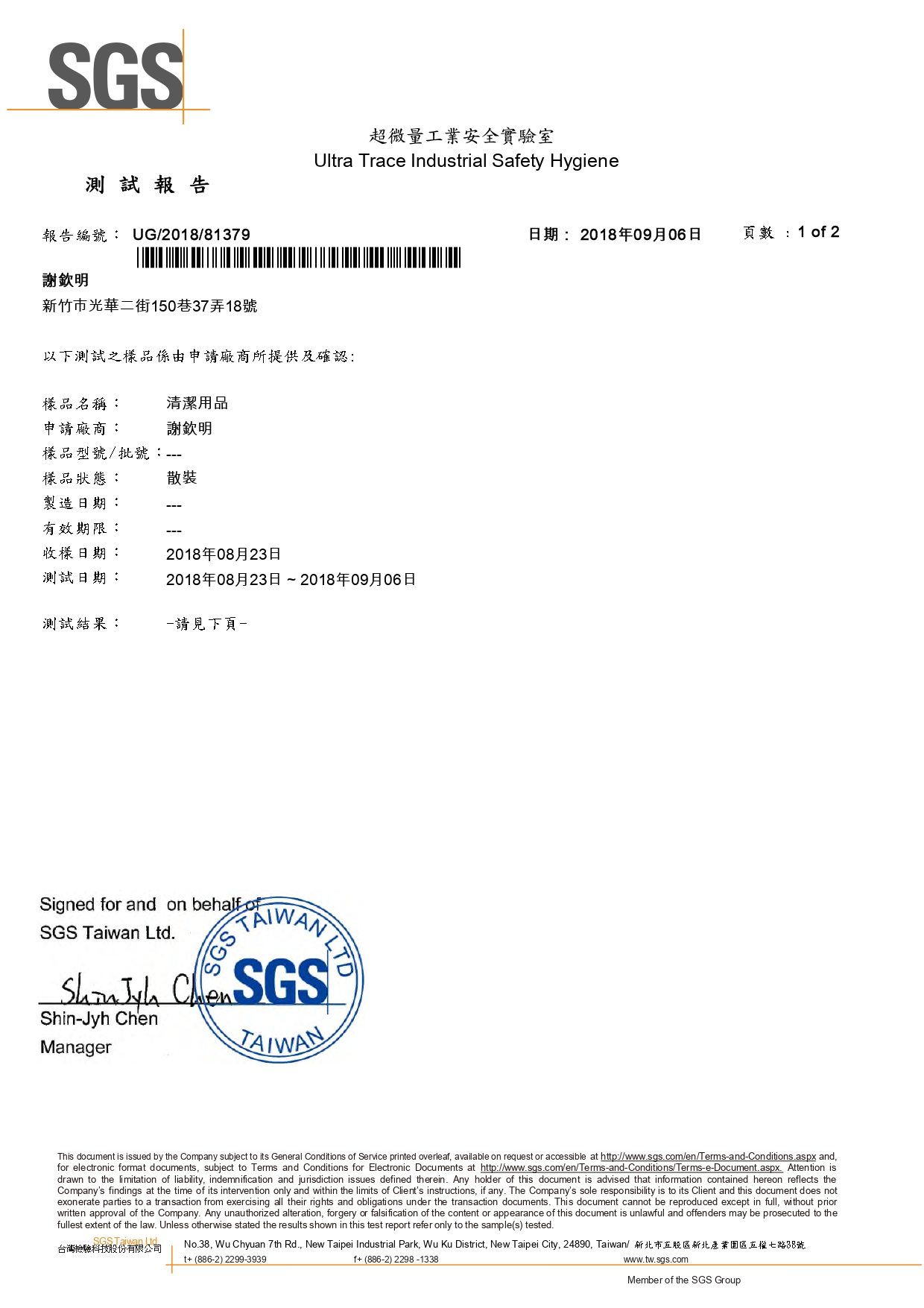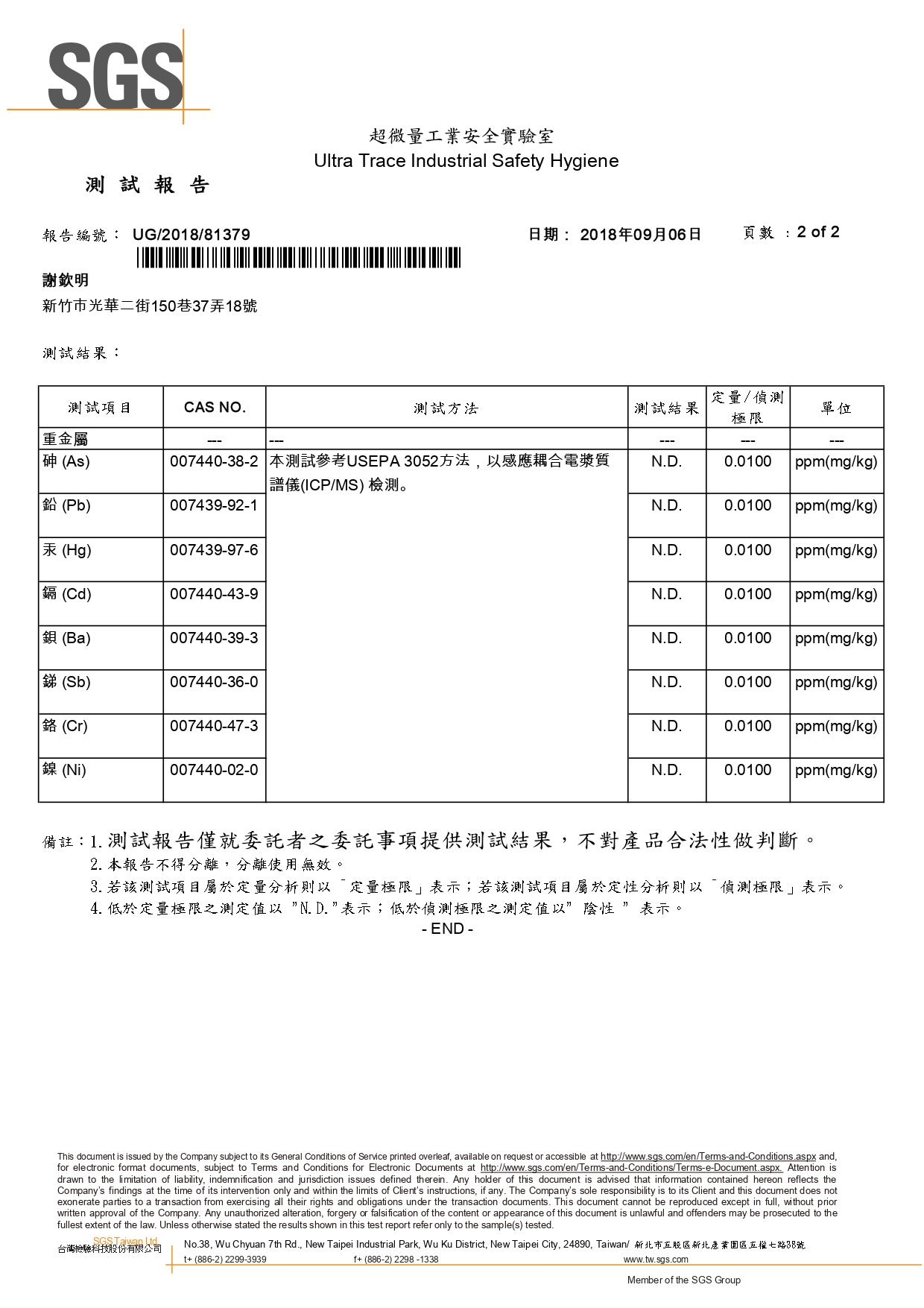 測試項目:重金屬(測試項目八項),採USEPA3052方法,合格。